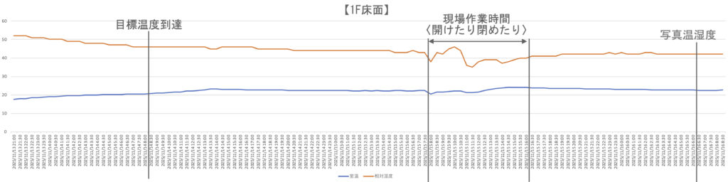 測定目的は1Fの冬用エアコン1台を設定温度22℃で運転し